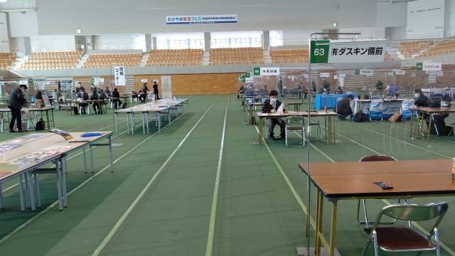 2021年11月25日、「おかやま就活フェス(新規学卒者等合同就職面接会)」がジップアリーナ岡山にて開催されました。参加企業は、午前の部、午後の部、合わせて206社でした。(おかやま新卒者等人材確保推進本部主催)